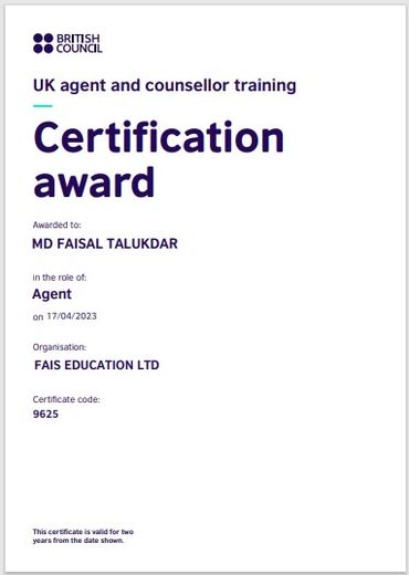 FAIS Education Ltd is one of the leading student consultancy firms providing full application support to place students into UK Universities. We are trying to solve students’ suffering during the application process for home and international students by connecting our platform to different educational institutions. We are working closely with UK Schools. Colleges and universities, try to help prospective students to make the right decision regarding their education and career. We are certified by the British Council and UCAS. The majority of our consultants are former international students who experienced the difficulties and opportunities of UK higher education provides. They come from a variety of nationalities themselves and have been trained by our trusted university partners. Our head office is in London and we speak 4 different languages across our 2 international branch offices in 2 countries globally. All our consultants are expertly trained to give the best possible, free, accurate and impartial advice. FAIS represents 70+ UK higher education institutions. We have a 98% visa success and 99.6% student satisfaction rate. We are dedicated to upholding the highest levels of integrity and professionalism in our interactions with partner institutions and students. We strive to know and understand students' educational and financial backgrounds in order to provide them with the best advice to help them achieve their goals. Our clients are the heart of our company so we take care of them until they reach their destination through regular follow-up.
